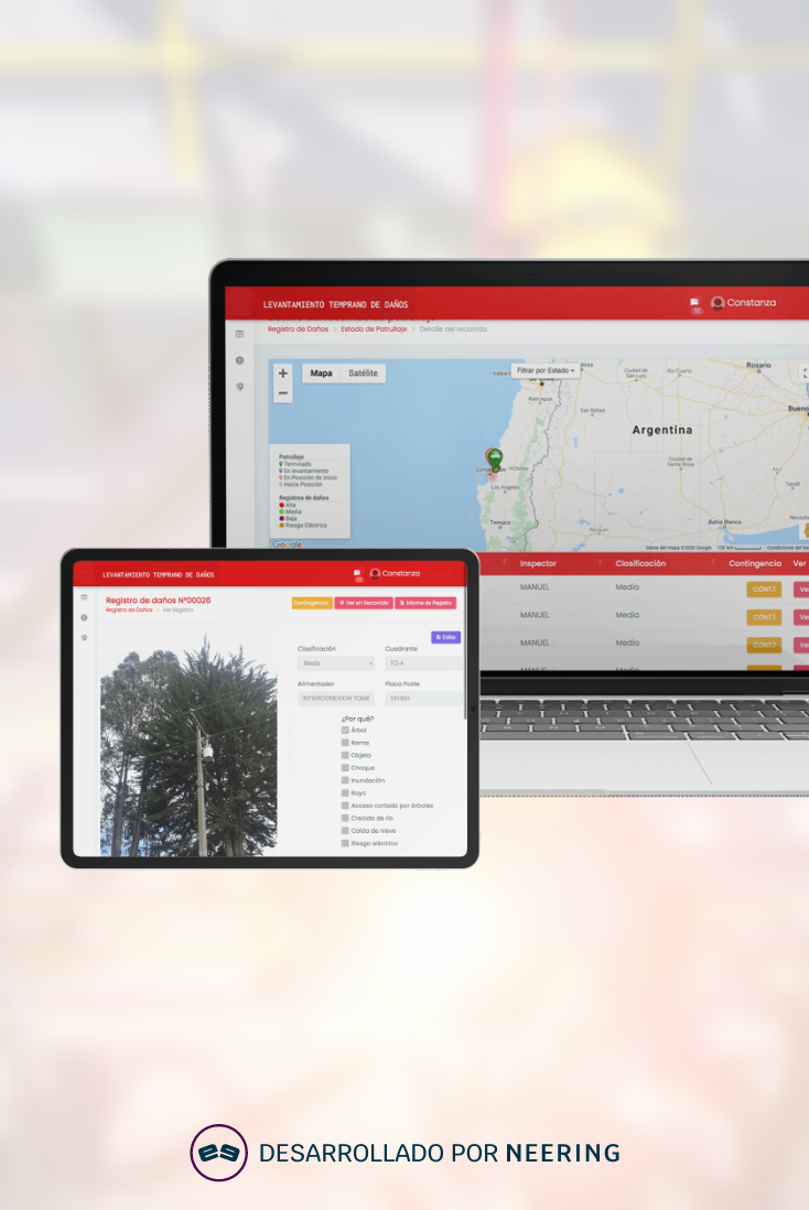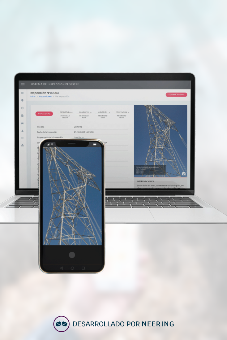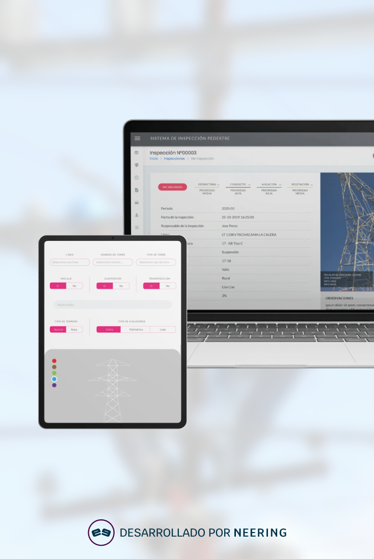 Sistema capaz de automatizar y organizar de mejor manera algunos de los procesos relacionados con el control, levantamiento y manejo de información en las inspecciones pedestres de líneas de alta tensión a través de la digitalización de procesos que se realizan comúnmente de forma manual por medio de una aplicación web y móvil.